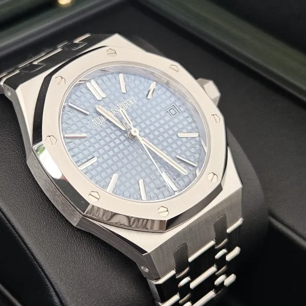 Una pieza rara. Ice Blue es una de las esferas más exclusivas en la línea Royal Oak 37mm. Estética fría, presencia caliente.