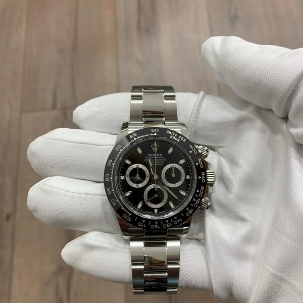 ▪️ Caja de cerámica negra mate – resistente, ligera y antirayaduras ▪️ Esfera negra con detalles blancos y rojos – máxima legibilidad ▪️ Cronógrafo integrado con subesferas deportivas ▪️ Movimiento automático suizo – potencia con precisión ▪️ Correa de caucho negro con cierre deployante – comodidad garantizada