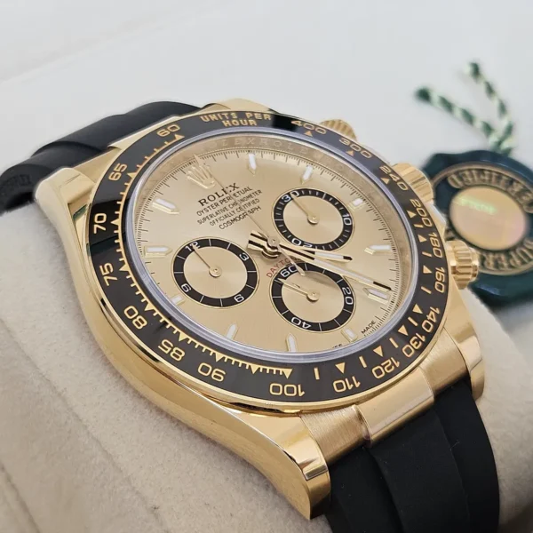 Pura fuerza en oro amarillo. Este Daytona es carácter total con un toque clásico infalible.