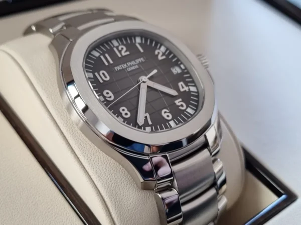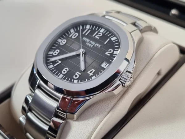 El Patek Philippe Aquanaut 5167A en Acero es un clásico moderno sport. Presenta una esfera negra con índices aplicados luminiscentes y correa tropical negra con cierre desplegable. Impulsado por el movimiento automático 324 S C. Se entrega NUEVO – Full Set. Disponible en Watch Ocasion.