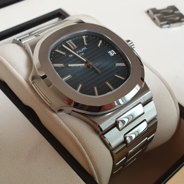 Uno de los modelos más complicados y armónicos del Nautilus. Reserva de marcha, fase lunar, micro rotor. Año 2022.